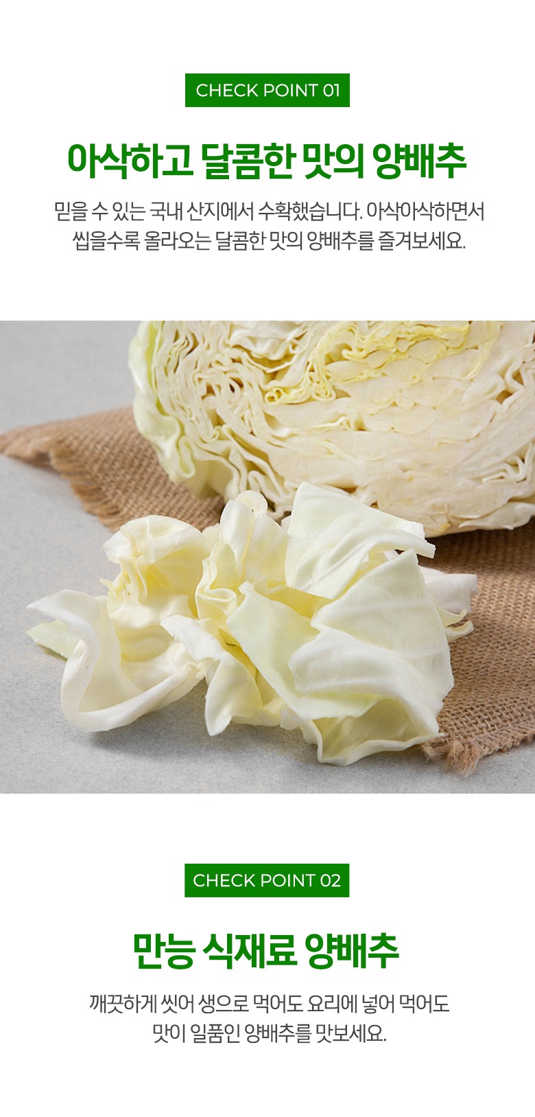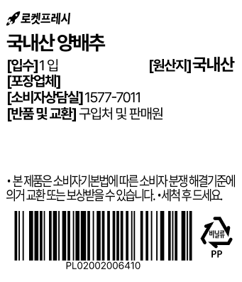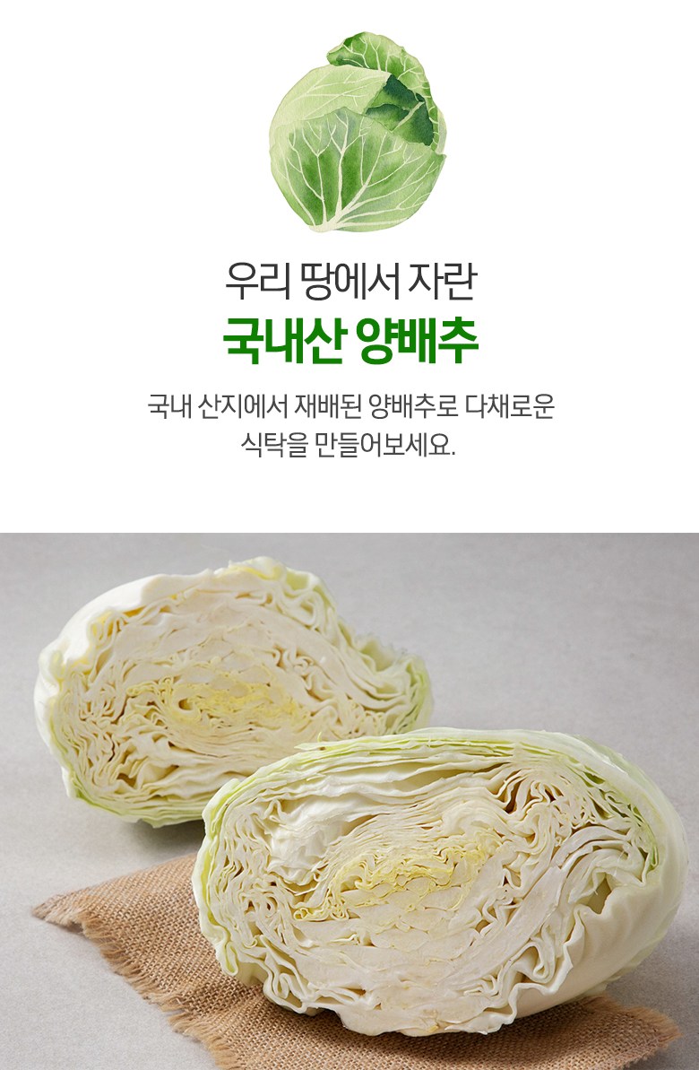 | 품목 또는 명칭 | 국내산 양배추 | 포장단위별 내용물의 용량(중량),수량,크기 | 1개입(1.2kg 이상) x 3개 |