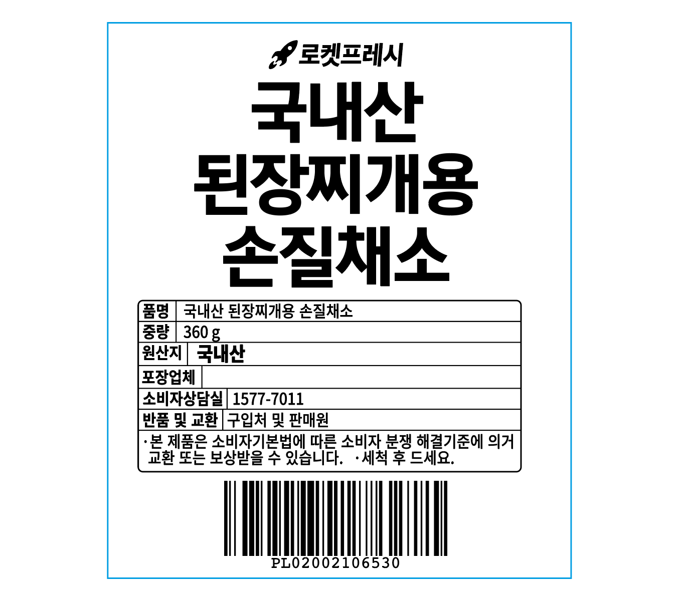 | 생산자(수입자) | [로켓프레시] 국내산 된장찌개용 손질채소, 360g, 1팩_PL_vege | 원산지 | 컨텐츠 참조 |