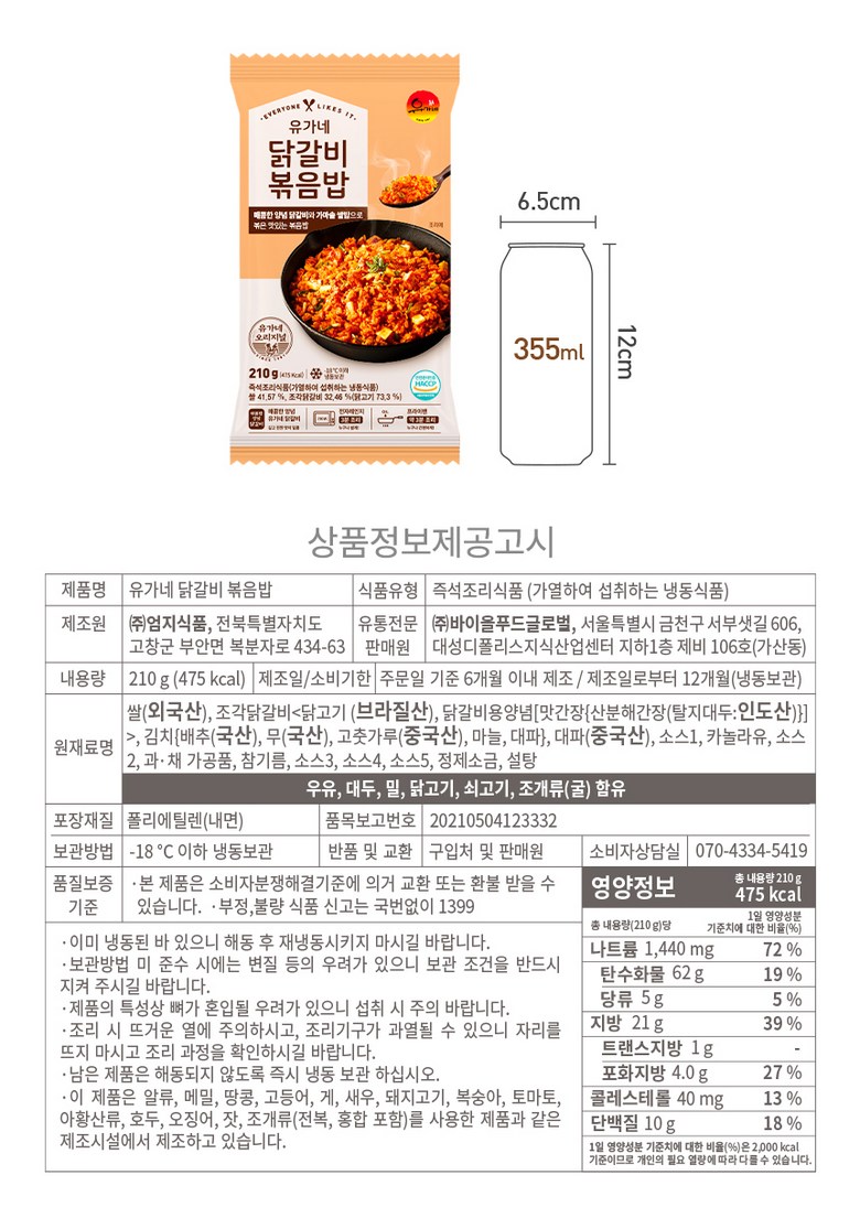| 제품명 | 상품 상세페이지 참조 | 식품의 유형 | 즉석조리식품(가열하여 섭취하는 냉동식품) |