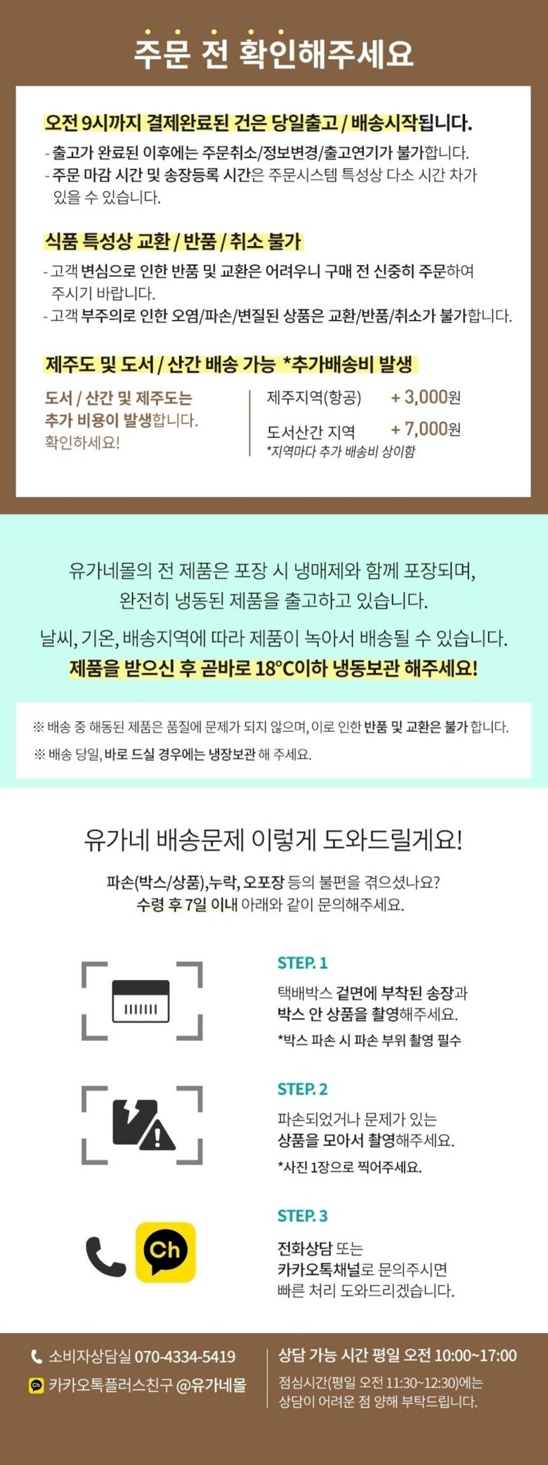| 배송방법 | 순차배송 | 배송비 | 무료배송 · 도서산간 추가 배송비 - 제주 지역: 3,000원 - 도서산간 지역: 7,000원 |