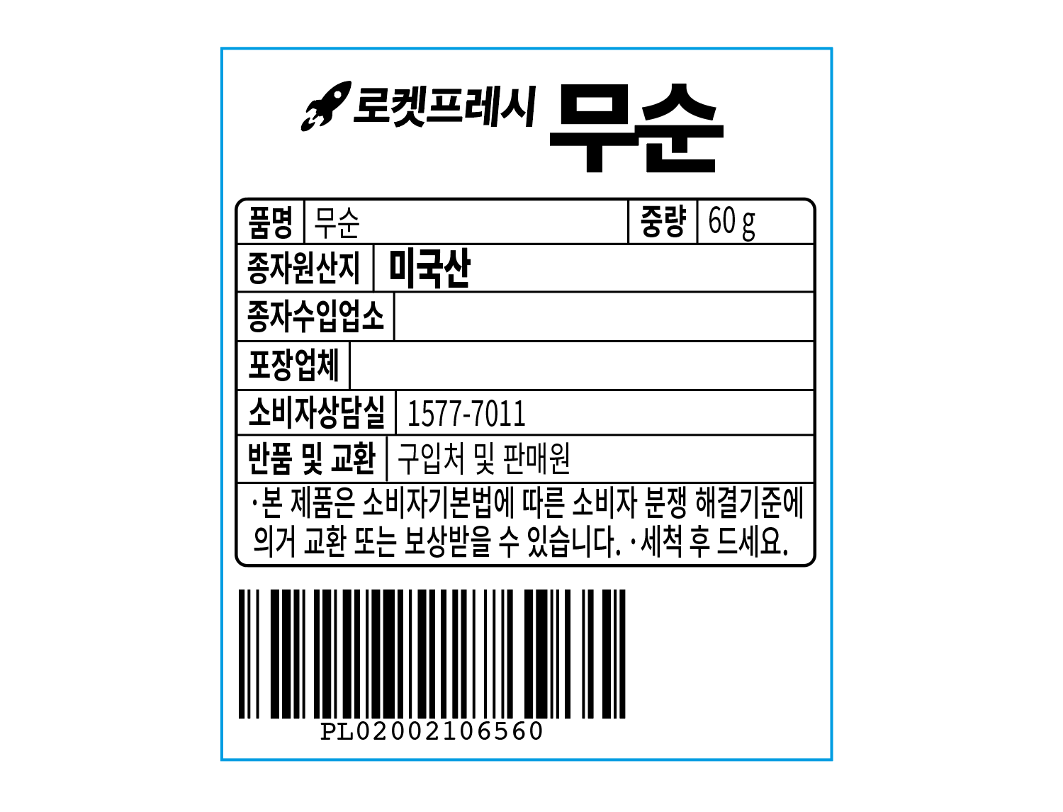 | 품목 또는 명칭 | 무순 | 포장단위별 내용물의 용량(중량),수량,크기 | 60gx2개 |