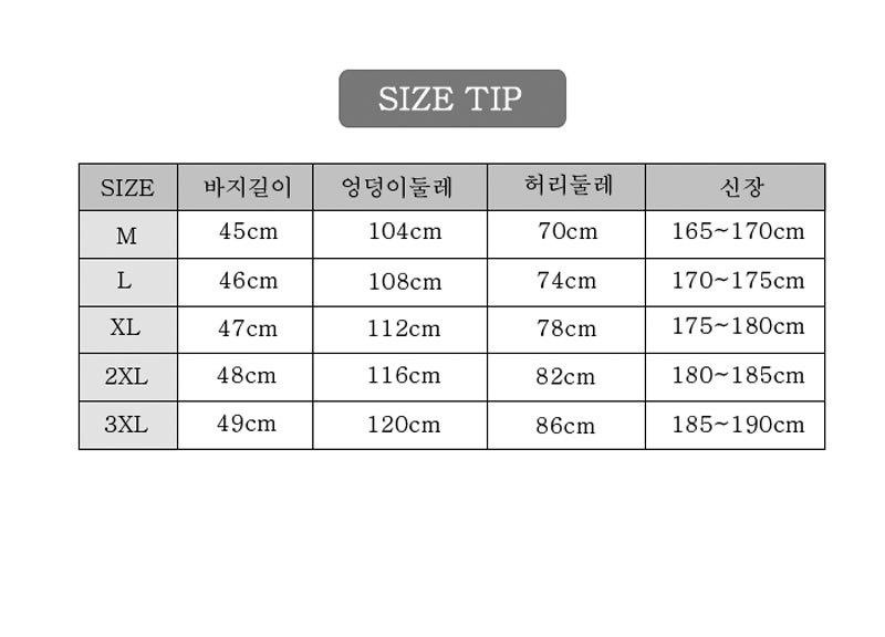 - 하의류 길이: 무릎 위 길이(반바지 길이)