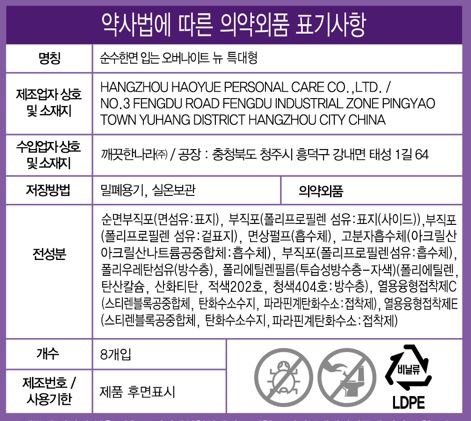 | 품명 및 모델명 | 순수한면입는오버나이트뉴특대형 | 인증/허가 사항 | 의약외품 |