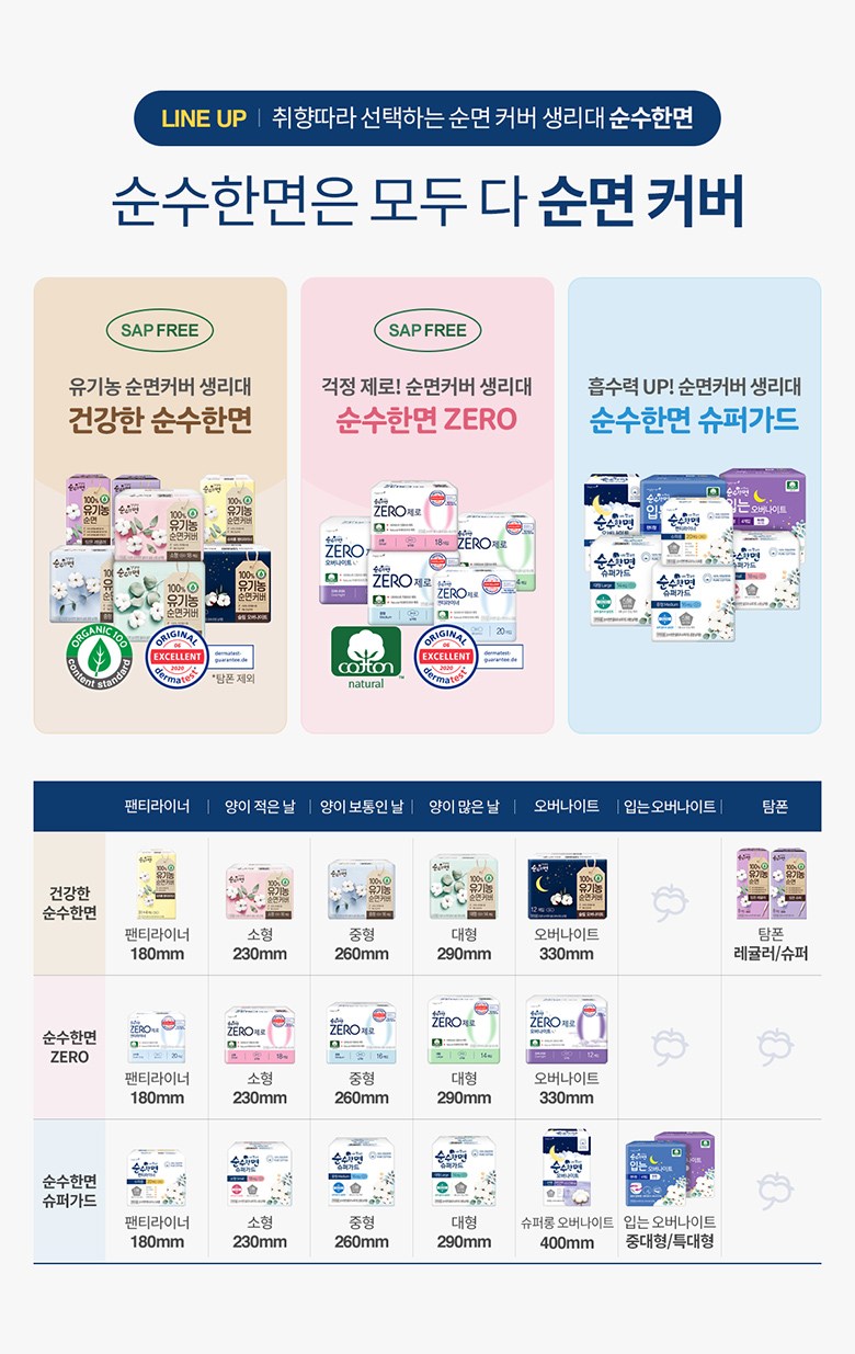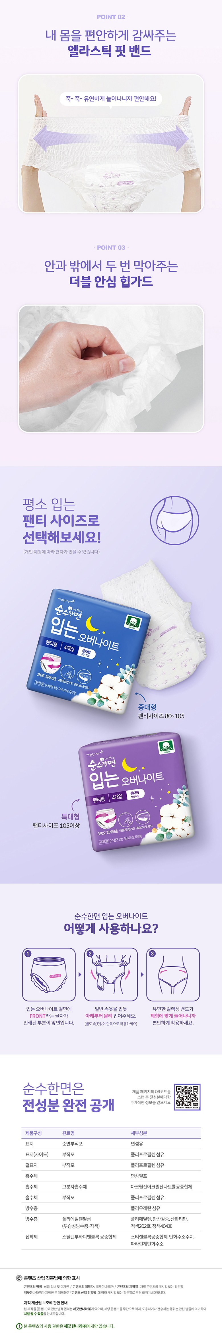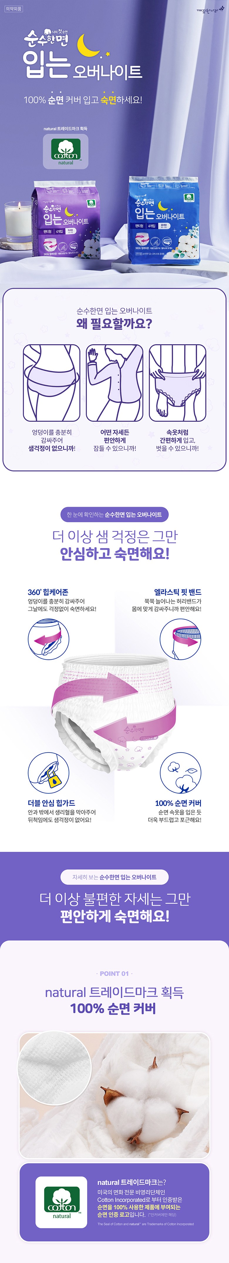 | 품명 및 모델명 | 순수한면 입는 오버나이트 | 인증/허가 사항 | 의약외품 |