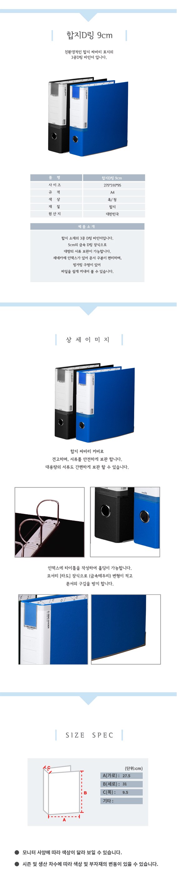 - 바인더 링 사이즈: 9cm
