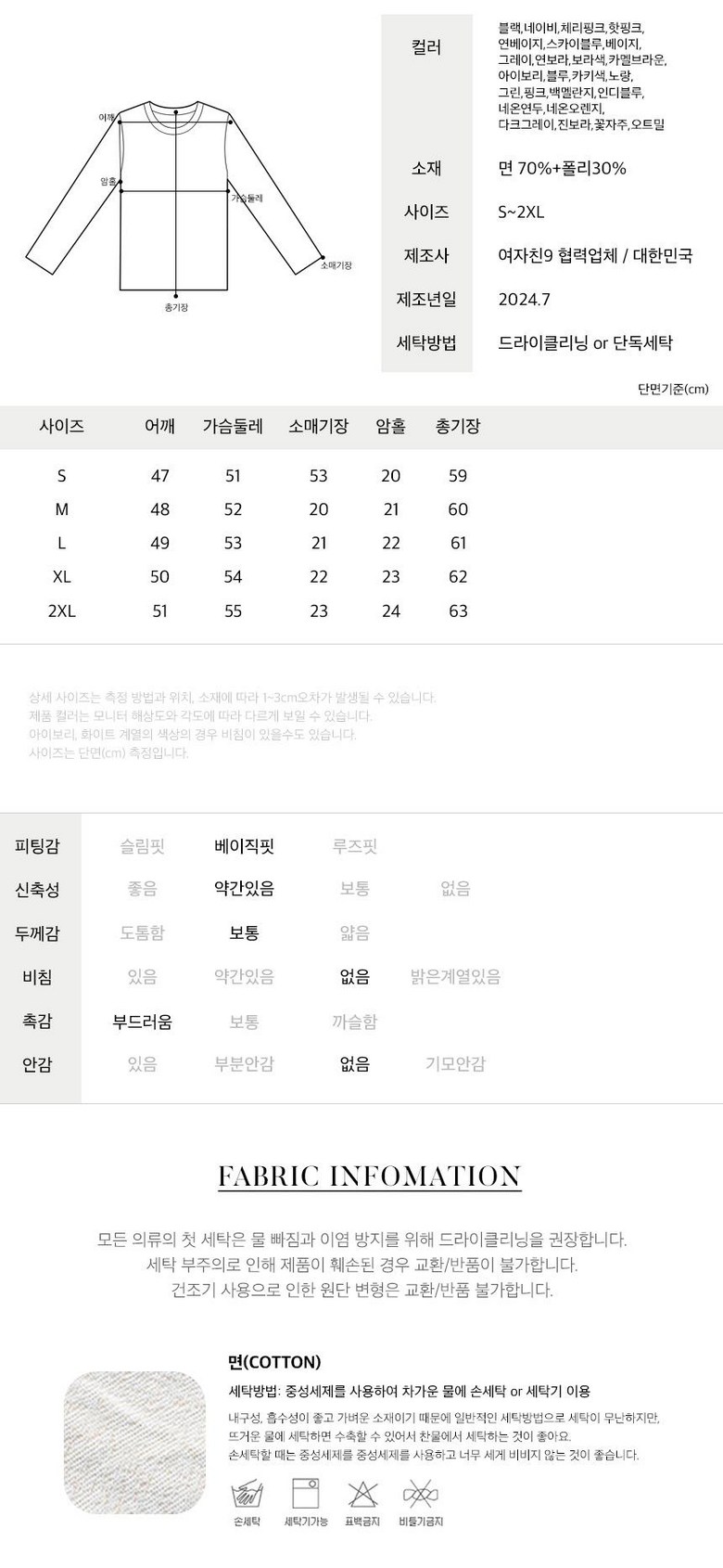 | 제조국 | 대한민국 | 세탁방법 및 취급시 주의사항 | 상품상세참조 |