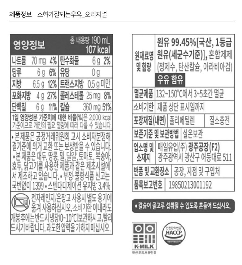 | 생산자 및 소재지 | 상품 상세페이지 참조 | 제조연월일, 소비기한 또는 품질유지기한 | 상품 상세페이지 참조 |