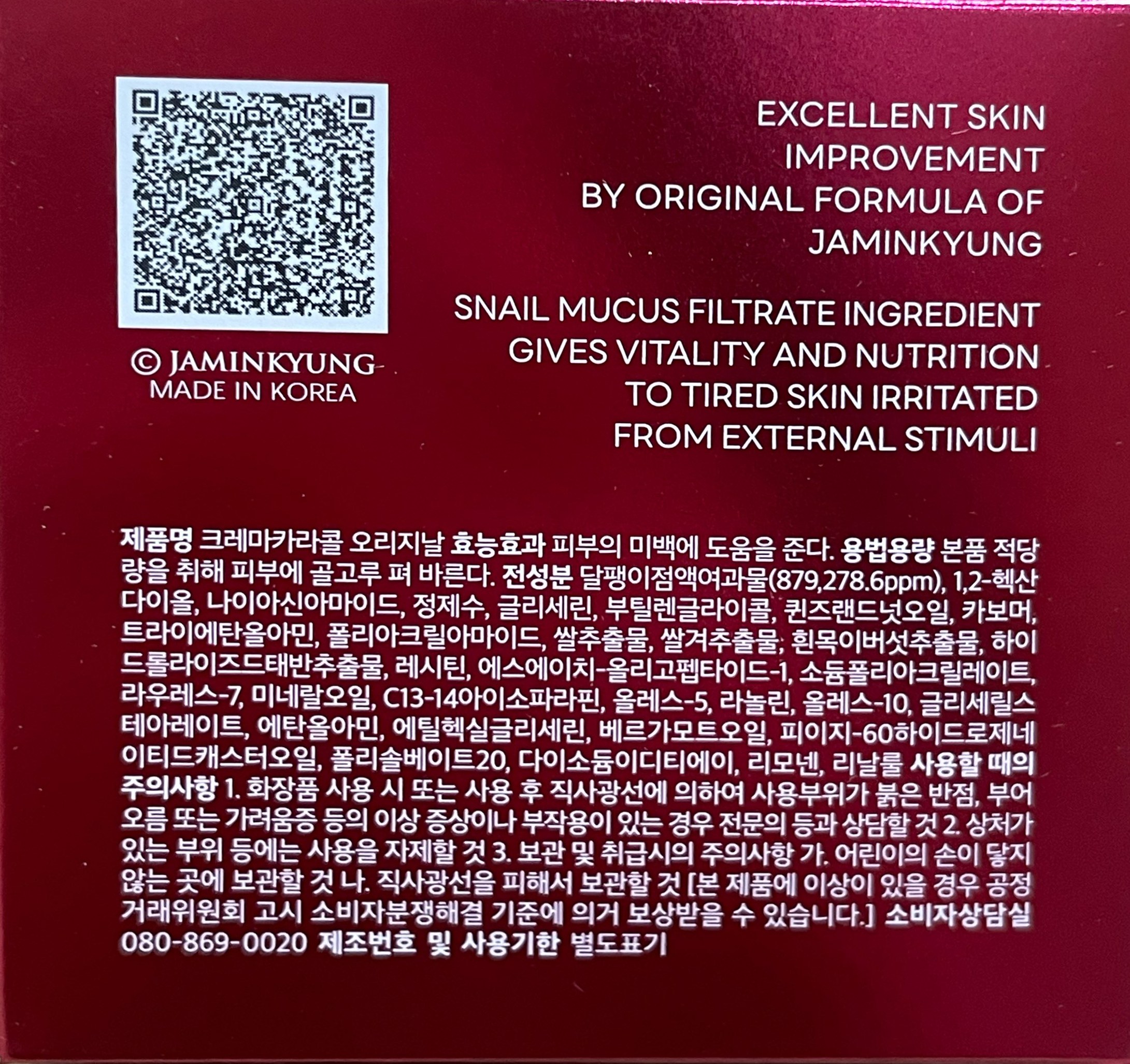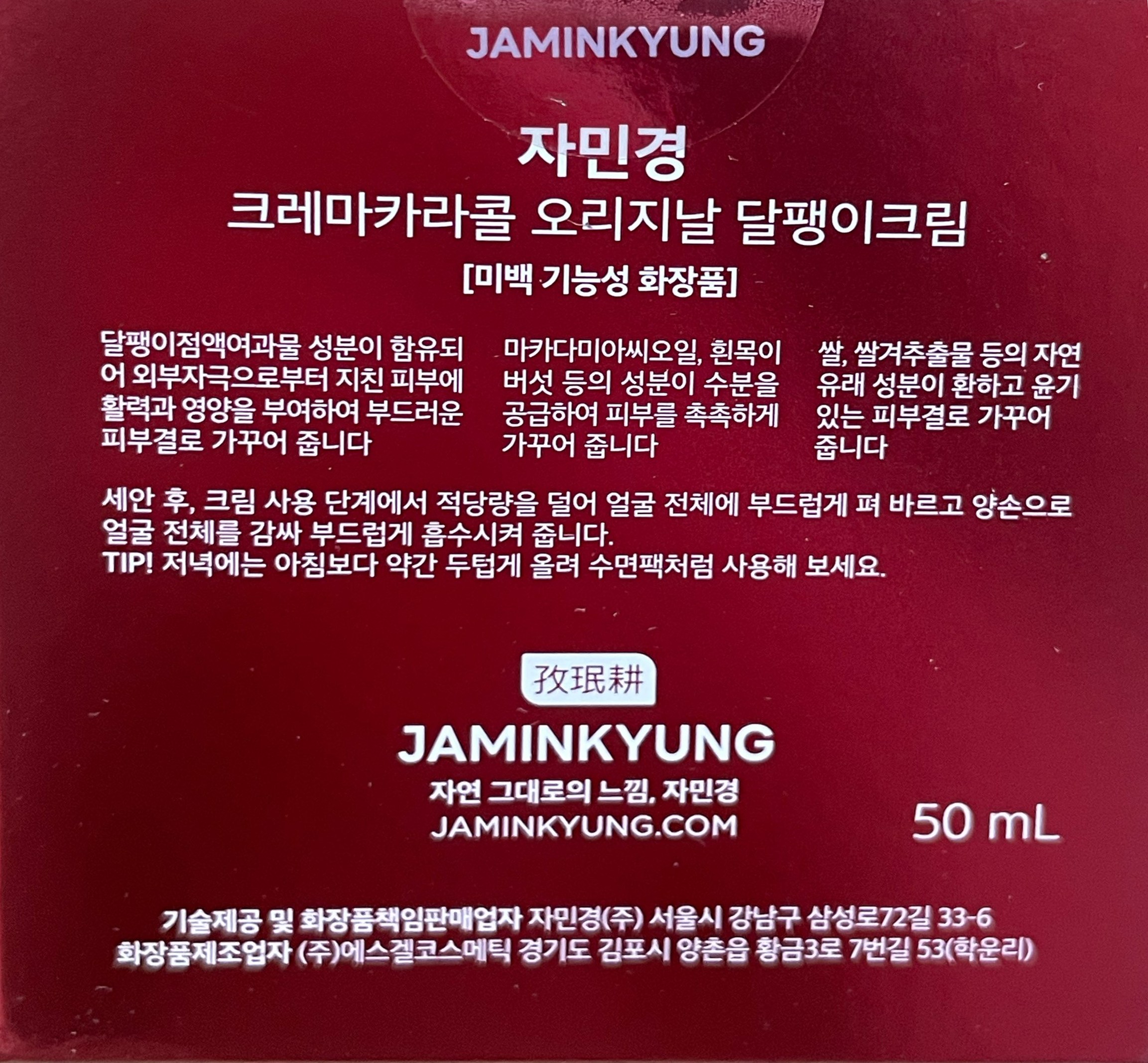 | 화장품제조업자, 화장품책임판매업자 및 맞춤형화장품판매업자 | (주)에스겔코스메틱 / 자민경(주) | 제조국 | 대한민국 |