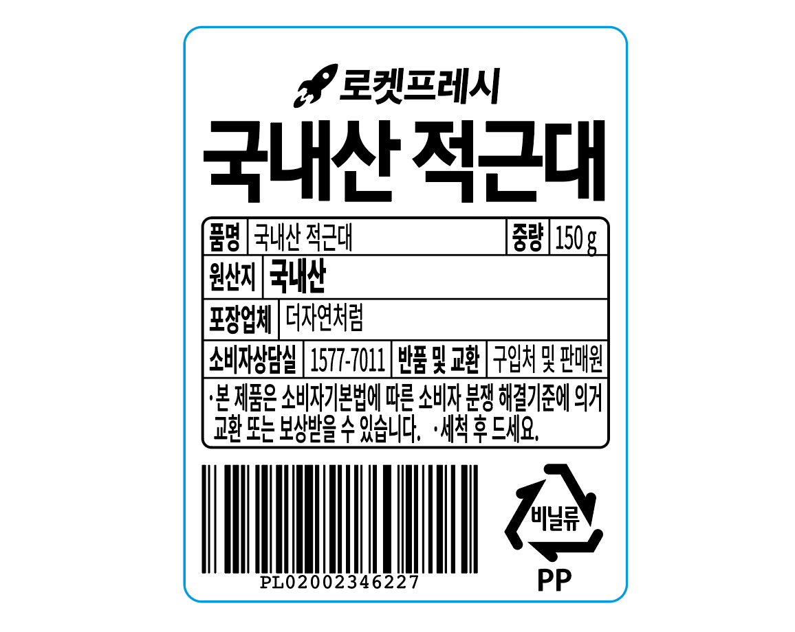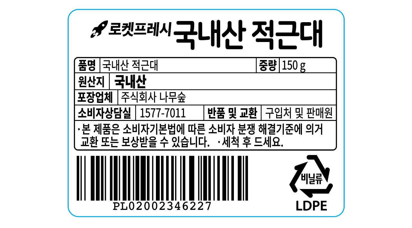 | 배송방법 | 신선/냉장/냉동 | 배송비 | 무료배송 - 로켓프레시 상품 중 15,000원 이상 구매 시 무료배송 - 해당 서비스 가능 지역에 한함 |