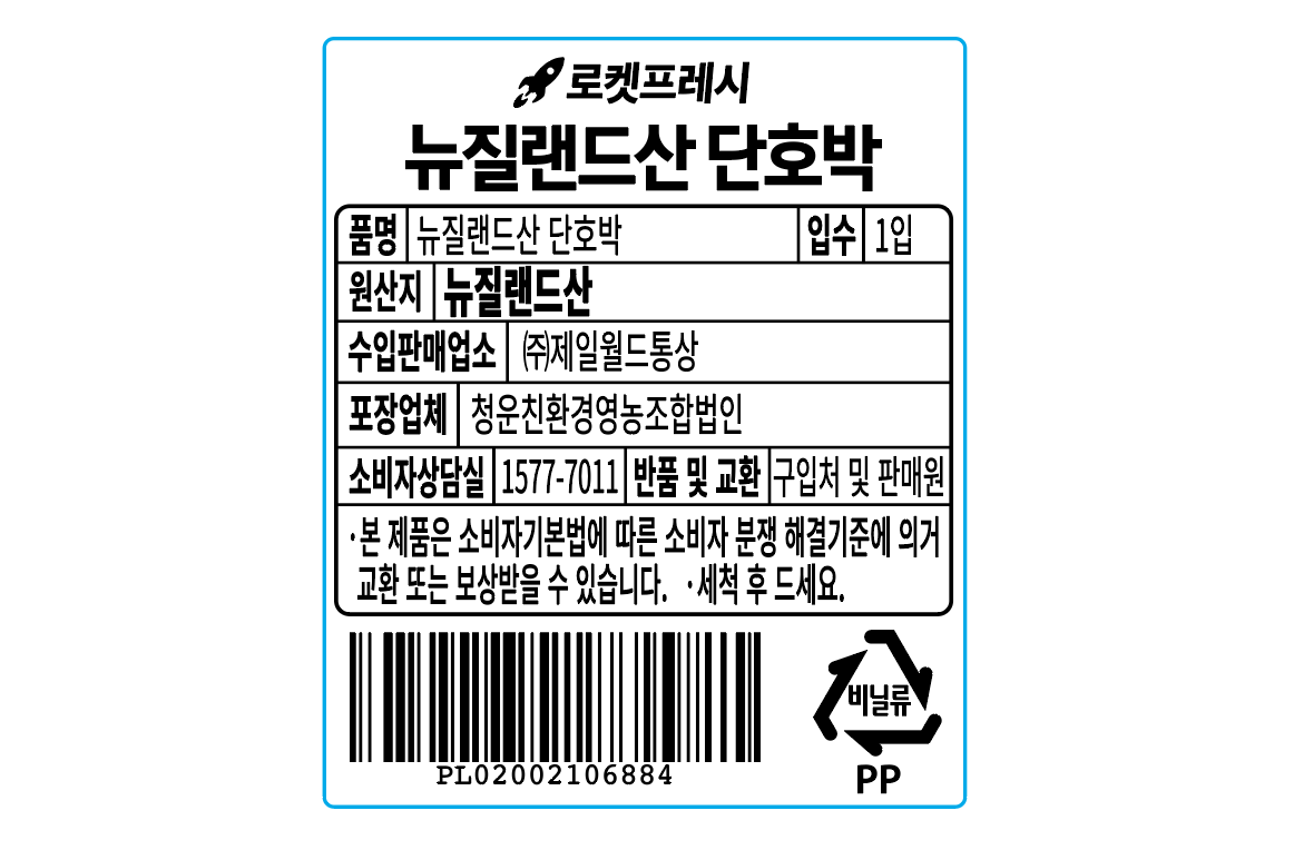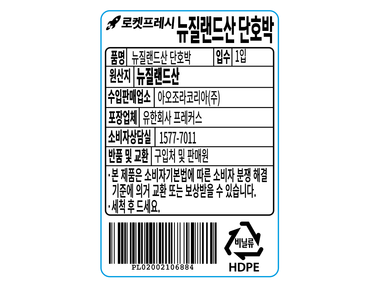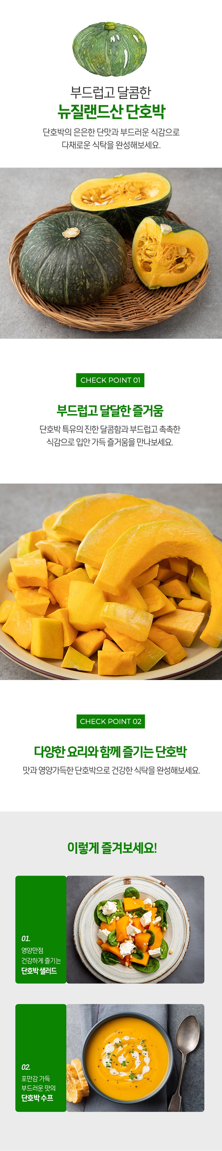 | 품목 또는 명칭 | 뉴질랜드산 단호박 | 포장단위별 내용물의 용량(중량),수량,크기 | 1개입(400g) x 3개 |