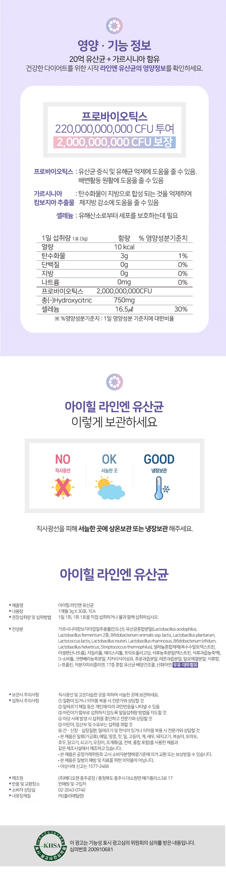 | 제품명 | 아이힐 라인엔 유산균 | 제조업소의 명칭과 소재지 | 컨텐츠 참조 |