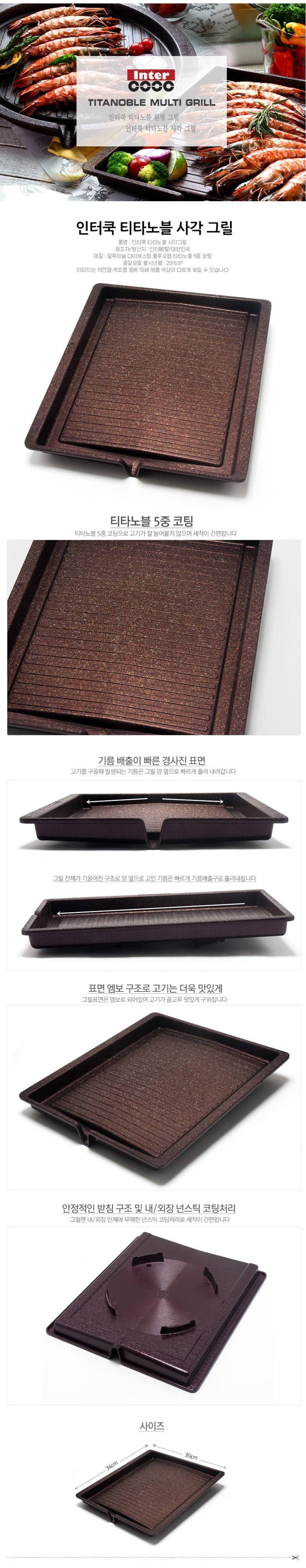 | 품명 및 모델명 | 인터쿡 티타노블 사각 그릴 | 재질 | 알루미늄다이캐스팅,플루오캠티타노블5중코팅 |