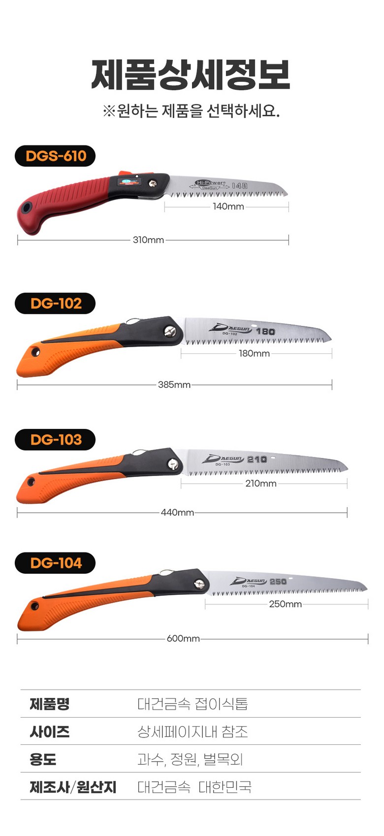 | 품명 및 모델명 | 국산 톱 | KC 인증정보 | 상품 상세페이지 참조 |