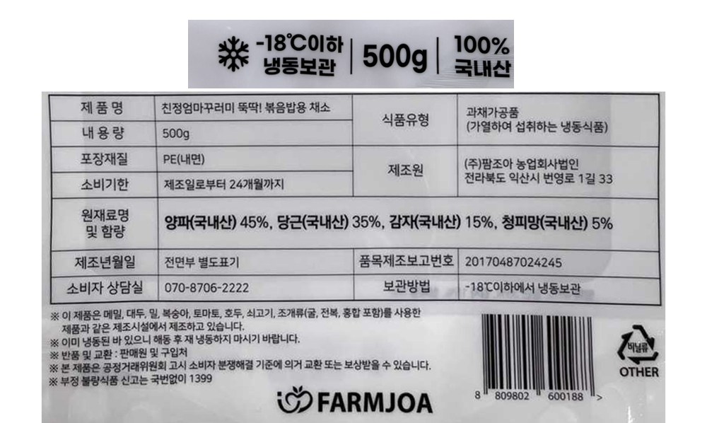 | 제품명 | 친정엄마꾸러미 뚝딱! 볶음밥용 채소 | 식품의 유형 | 컨텐츠참조 |