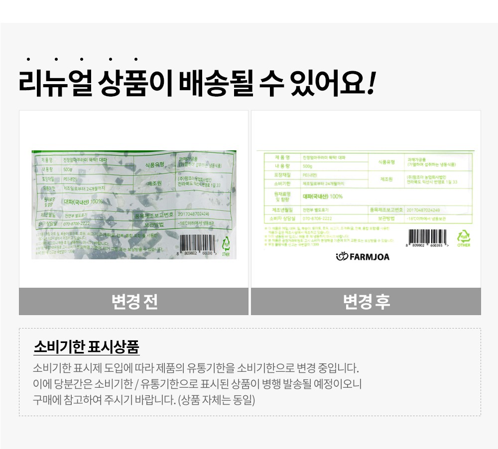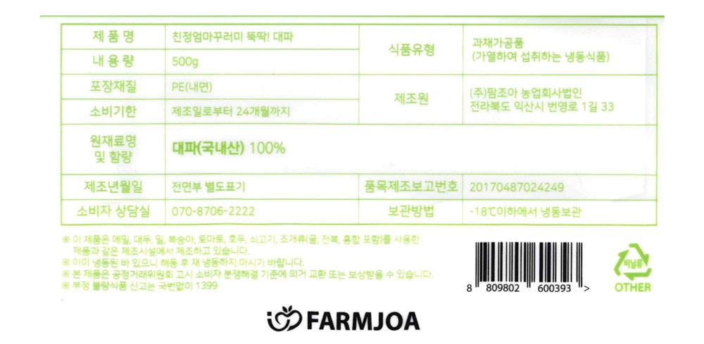 | 제품명 | 친정엄마꾸러미 뚝딱! 대파 | 식품의 유형 | 컨텐츠참조 |