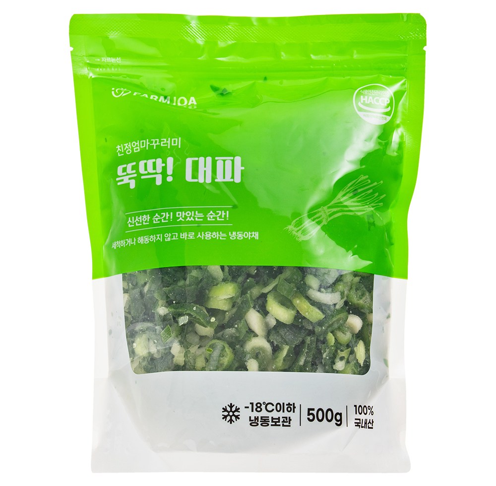 먹기 좋게 손질되어 있는 대파입니다. 따로 해동하거나 세척할 필요 없이 바로 사용할 수 있어 더욱 간편하답니다. 산뜻하고 알싸한 향이 일품이지요. 반찬, 찌개, 탕 등 다양한 요리로 활용해보세요.