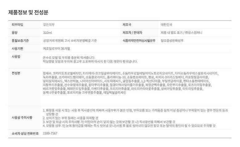 | 소비자상담 및 교환반품 문의 | 쿠팡고객센터 1577-7011 배송 및 환불/교환에 대한 문의는 마이쿠팡-고객센터 내 상담하기를 이용해주세요. | ||