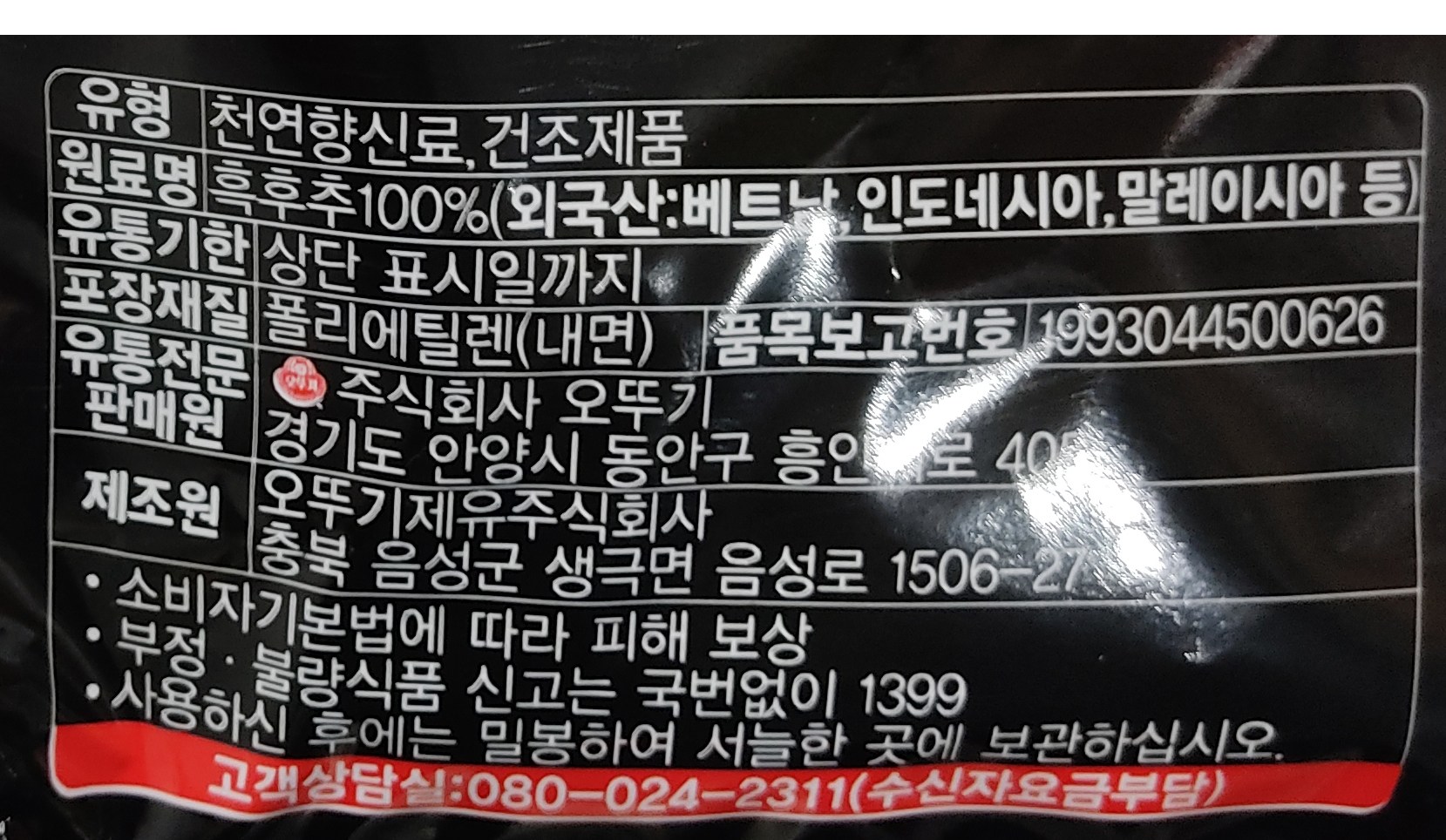 | 제품명 | 오쉐프 순후추 | 식품의 유형 | 천연향신료(건조제품) |