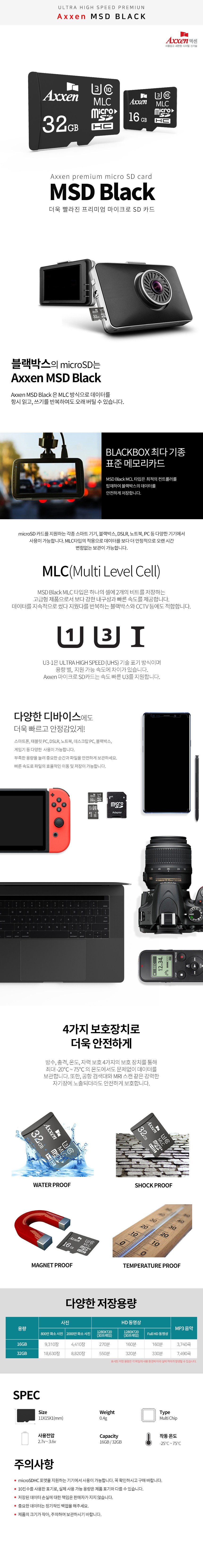 | 품명 및 모델명 | 액센 블랙박스용 MSD Black MLC U3 Class10 마이크로 SD 카드 | 인증/허가 사항 | 해당없음 |