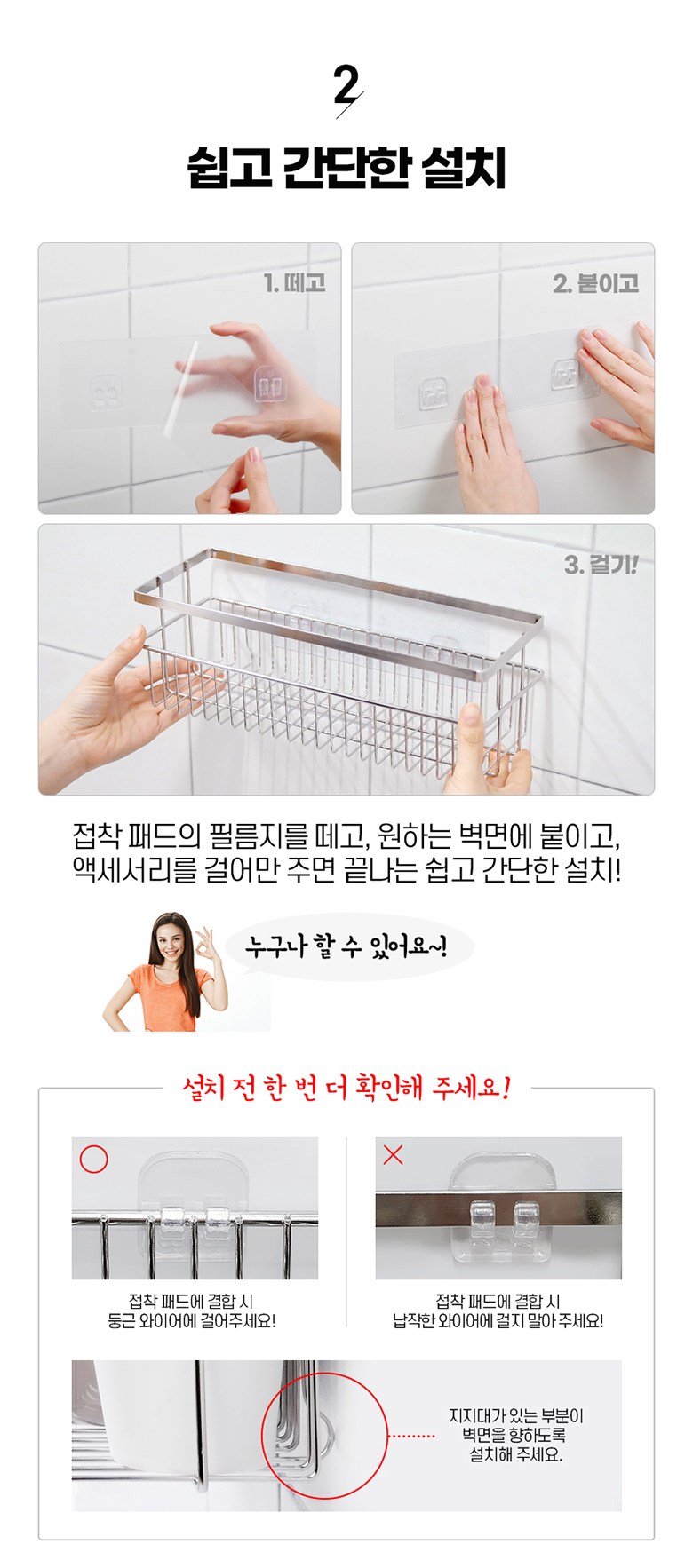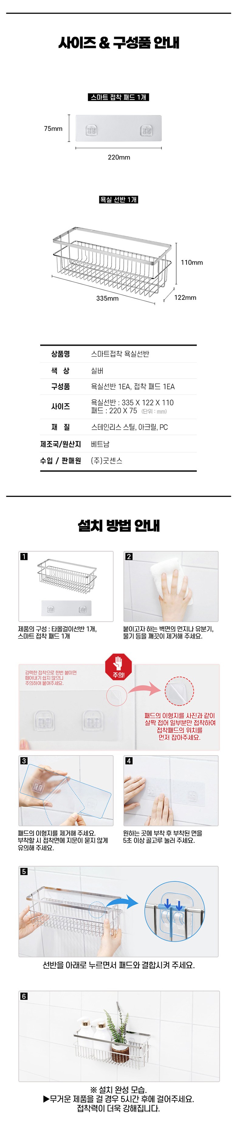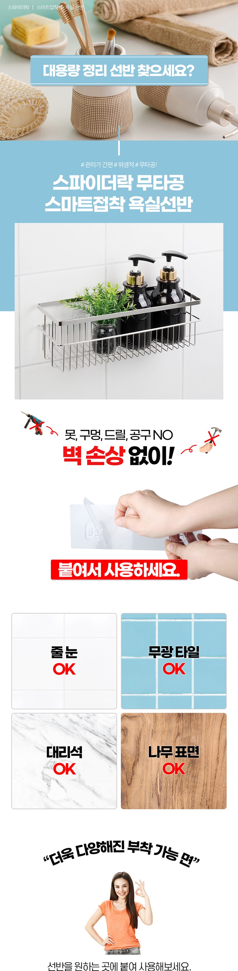 | 품명 및 모델명 | 스파이더락 무타공 스마트접착 욕실선반 | 인증/허가 사항 | 해당없음 |