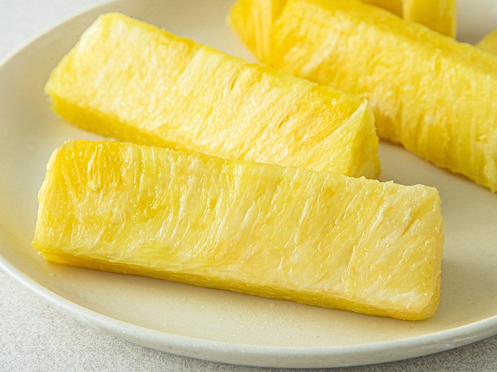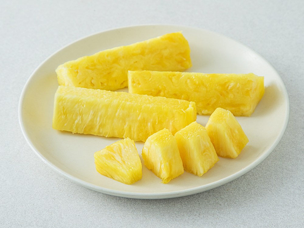 샛노란 과육을 베어 물면 상큼한 과즙이 입안 가득 퍼지는 프레쉬 파인애플을 만나보세요. 파인애플을 깔끔히 손질한 후 달콤한 과육만 담았답니다. 그대로 꺼내 상큼한 과즙을 음미해도 좋고 에이드, 스무디, 잼 등으로 활용해도 좋지요.