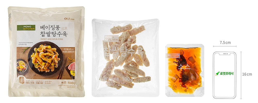 쫄깃쫄깃한 식감이 일품인 베이징풍 찹쌀탕수육을 만나보세요. 3시간 동안 저온 숙성한 돼지 등심에 쫀득한 튀김옷을 입혔답니다. 타피오카 전분과 찹쌀가루를 더해 입에 착 붙는 식감이 좋지요. 파인애플, 레몬 오이 등을 함유해 새콤달콤한 소스와 함께 즐겨보세요.