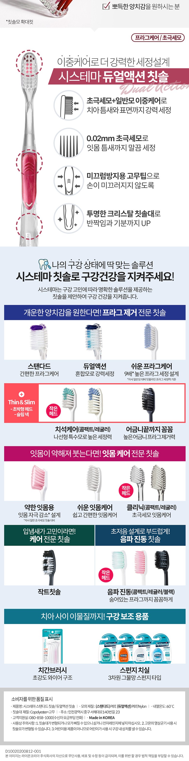 | 품명 및 모델명 | 시스테마 듀얼액션 칫솔 | 인증/허가 사항 | 해당없음 |
