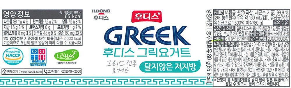| 제품명 | 그릭요거트 달지않은 저지방 | 식품의 유형 | 컨텐츠 참조 |