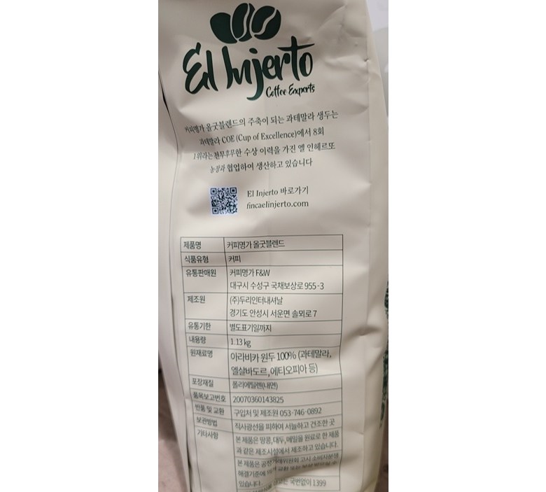 - 원두 분쇄타입: 홀빈(분쇄안함)