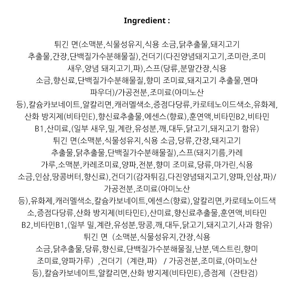 | 생산자 및 소재지 | Nissin Foods,Japan | 제조연월일, 소비기한 또는 품질유지기한 | 상품 상세페이지 참조 |