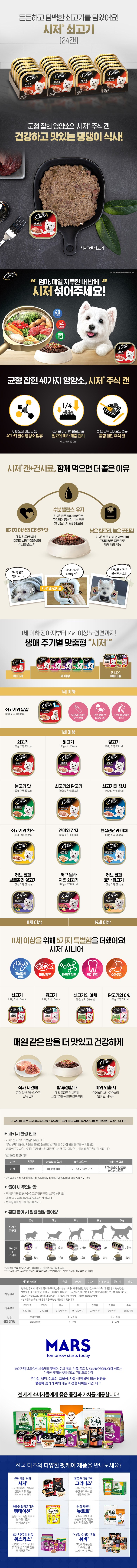 | 품명 및 모델명 | 시저 쇠고기 | 인증/허가 사항 | 사료관리법에 따른 성분등록번호 : 컨텐츠 참조 |