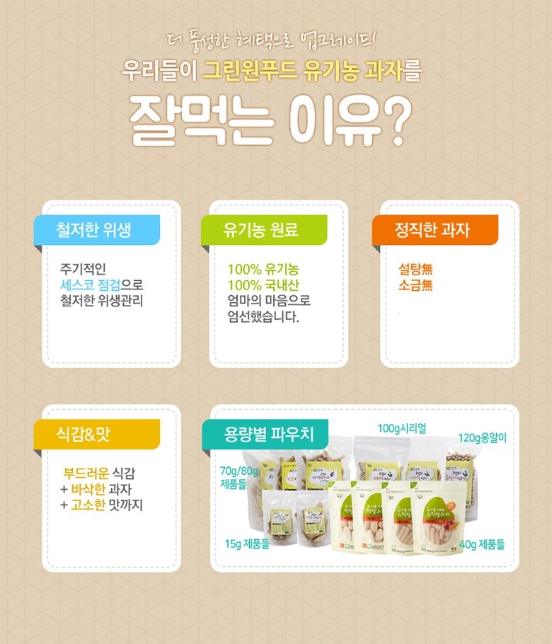 | 식품의 유형 | 과자류 | 생산자 및 소재지 | 그린원푸드 / 경기도 하남시 검단산로 333번길 34 |