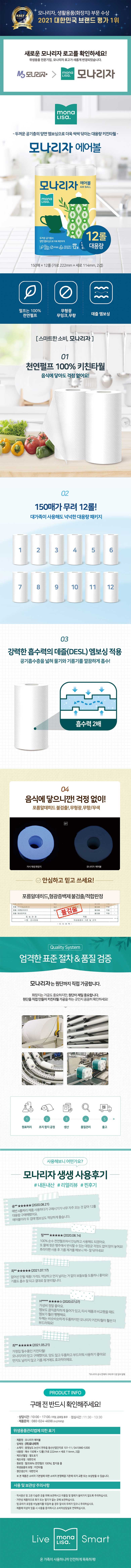 | 품명 및 모델명 | 모나리자 에어볼 키친타올 150매*12롤, 3팩 | 인증/허가 사항 | 해당없음 |