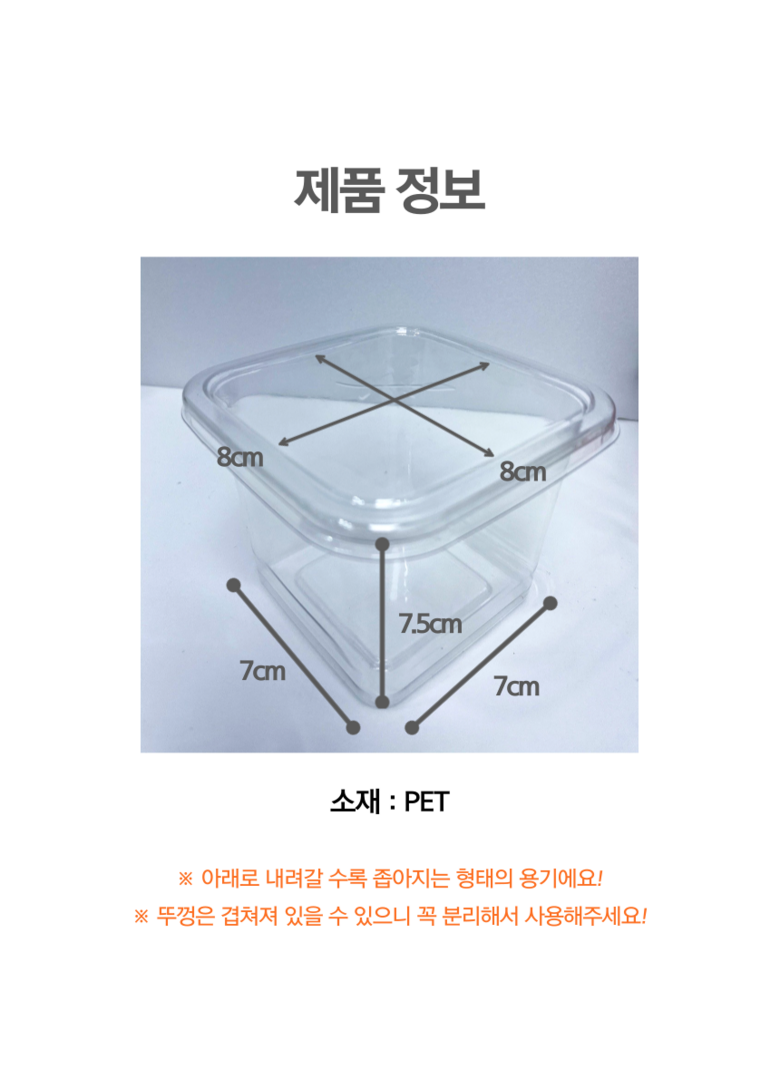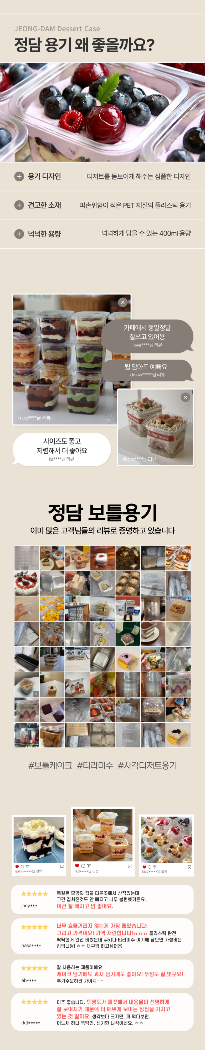 | 품명 및 모델명 | 정담 보틀케이크 용기 50세트 | 재질 | 상품 상세페이지 참조 |