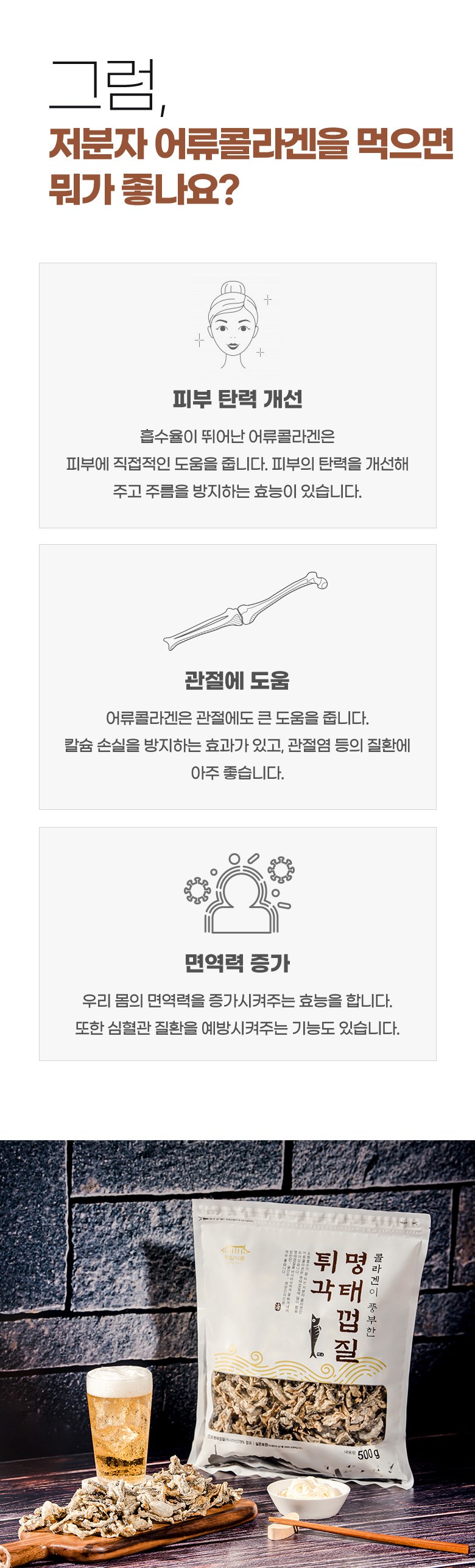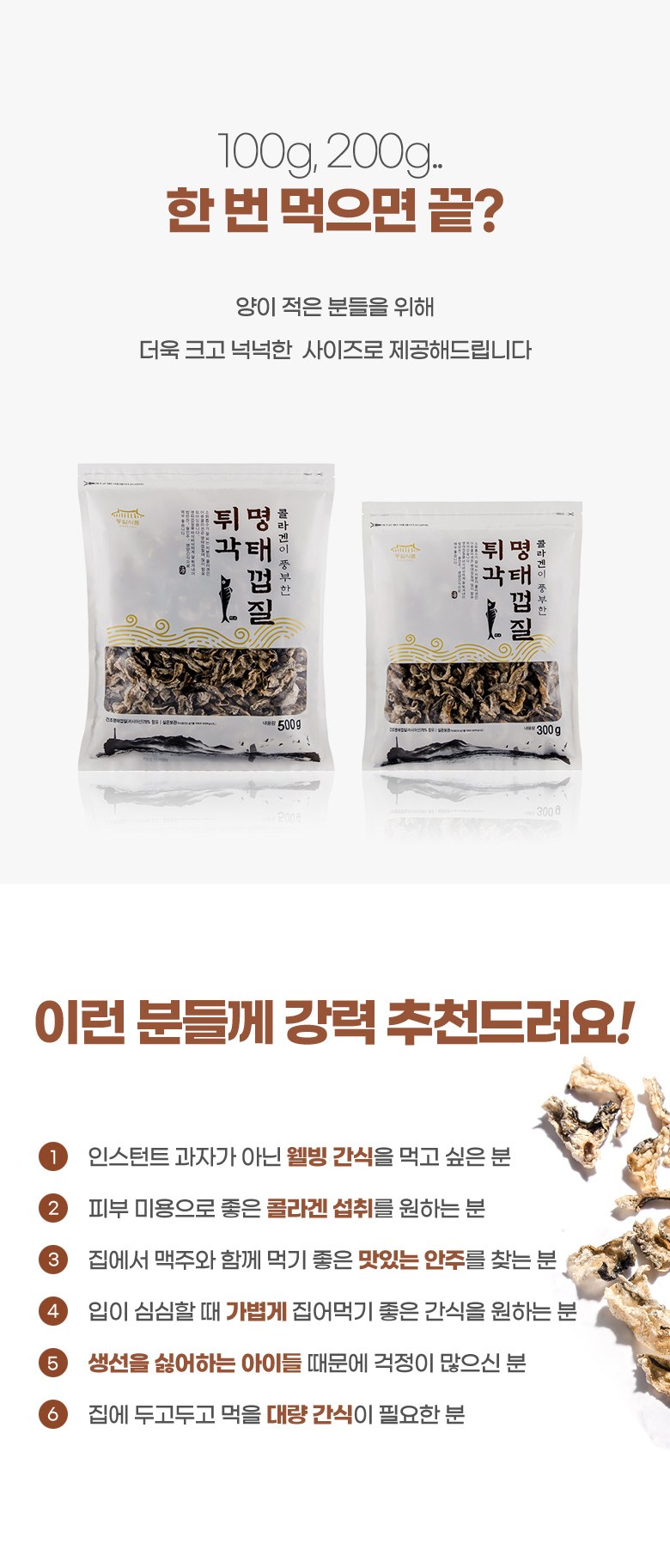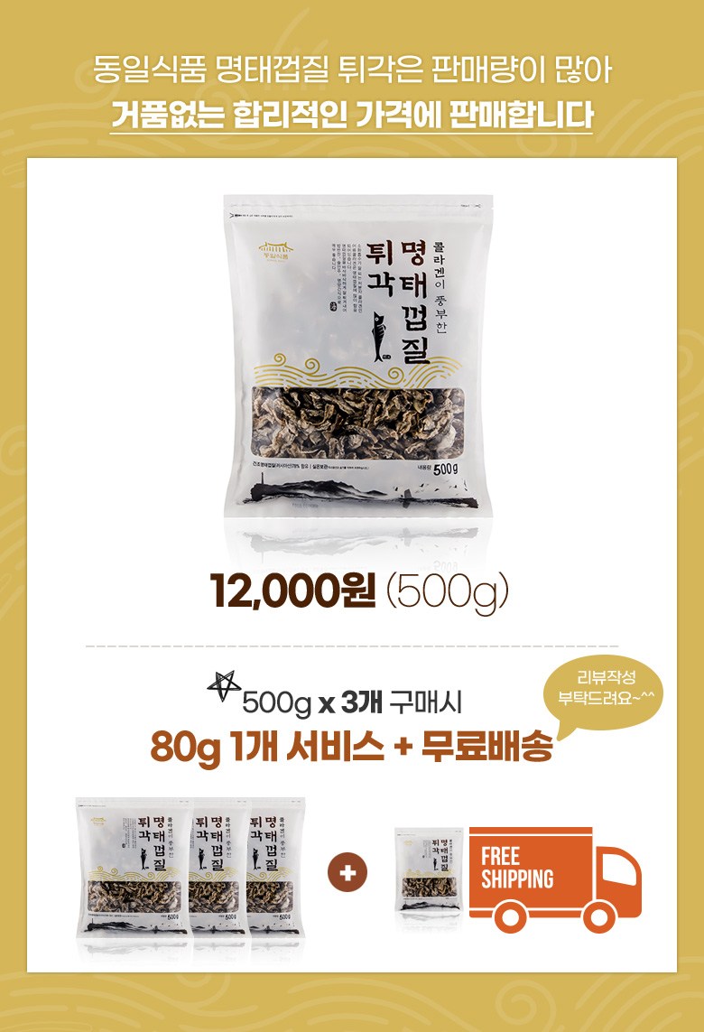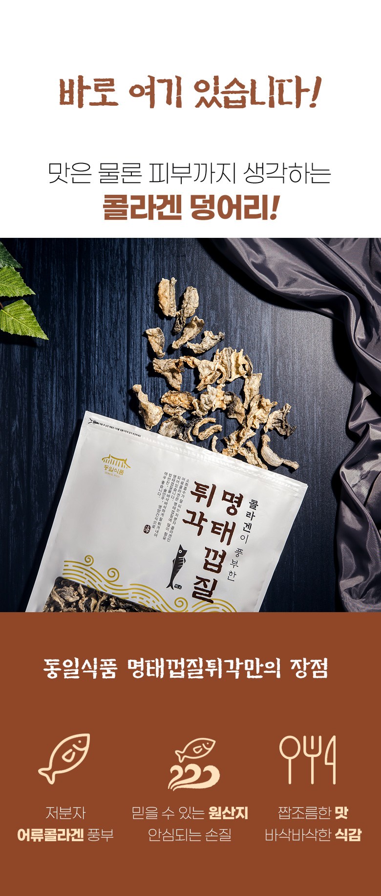 | 제품명 | 동일식품 명태껍질튀각 500g 콜라겐 황태껍질부각 이시영 | 식품의 유형 | 국내가공식품 |