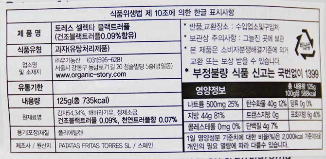 | 제품명 | 토레스 셀렉타 블랙트러플 | 식품의 유형 | 컨텐츠 참조 |