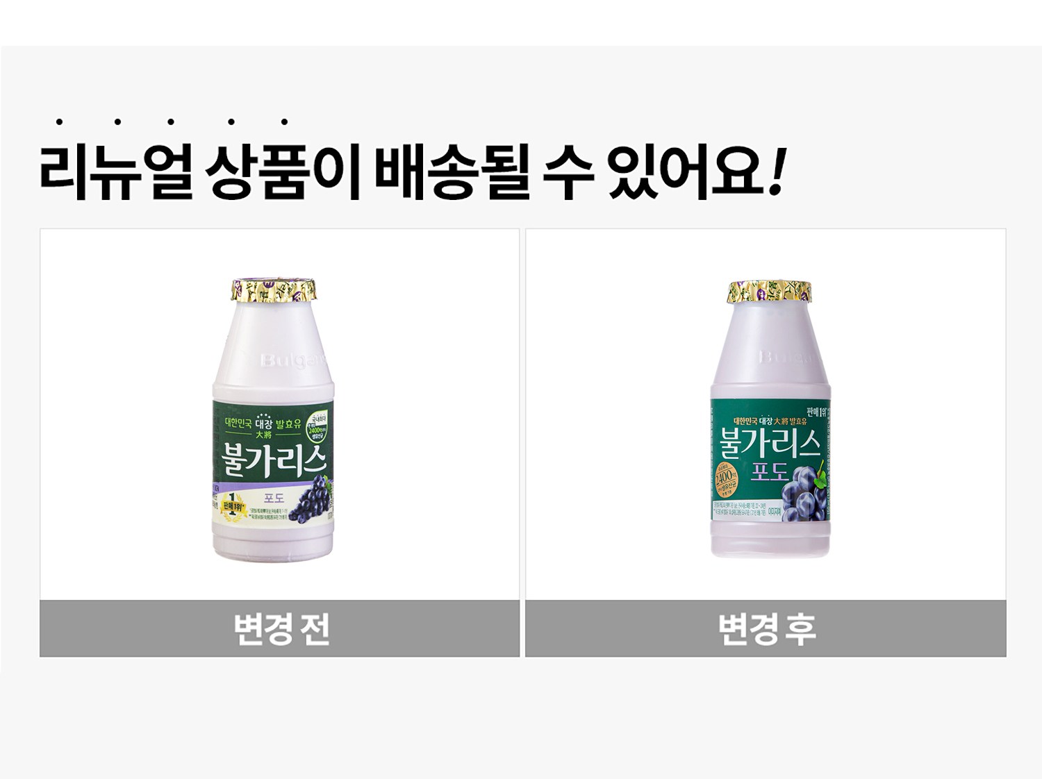 싱그러운 맛을 자랑하는 불가리스 포도를 소개할게요. 고소한 원유에 포도를 넣어 새콤달콤한 맛을 더했답니다. 유산균과 비피더스균 또한 함유되어 있죠. 한 모금 마시면 달콤한 포도향이 입안에 퍼져요. 불가리스와 함께 하루를 산뜻하게 시작해 보세요.