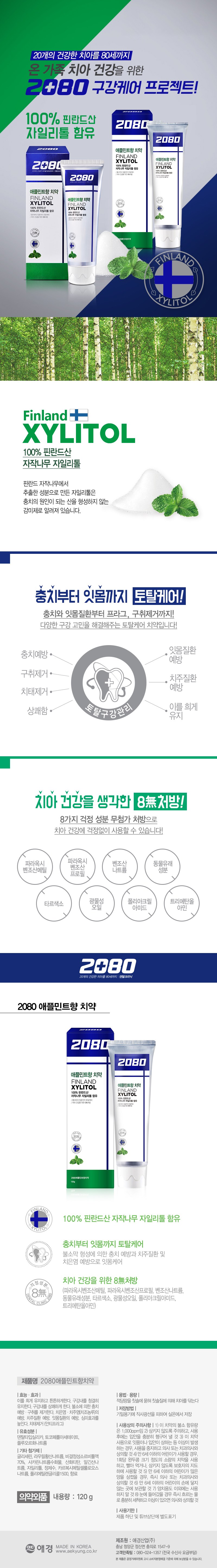 | 품명 및 모델명 | 2080애플민트향치약 | 인증/허가 사항 | 의약외품 |