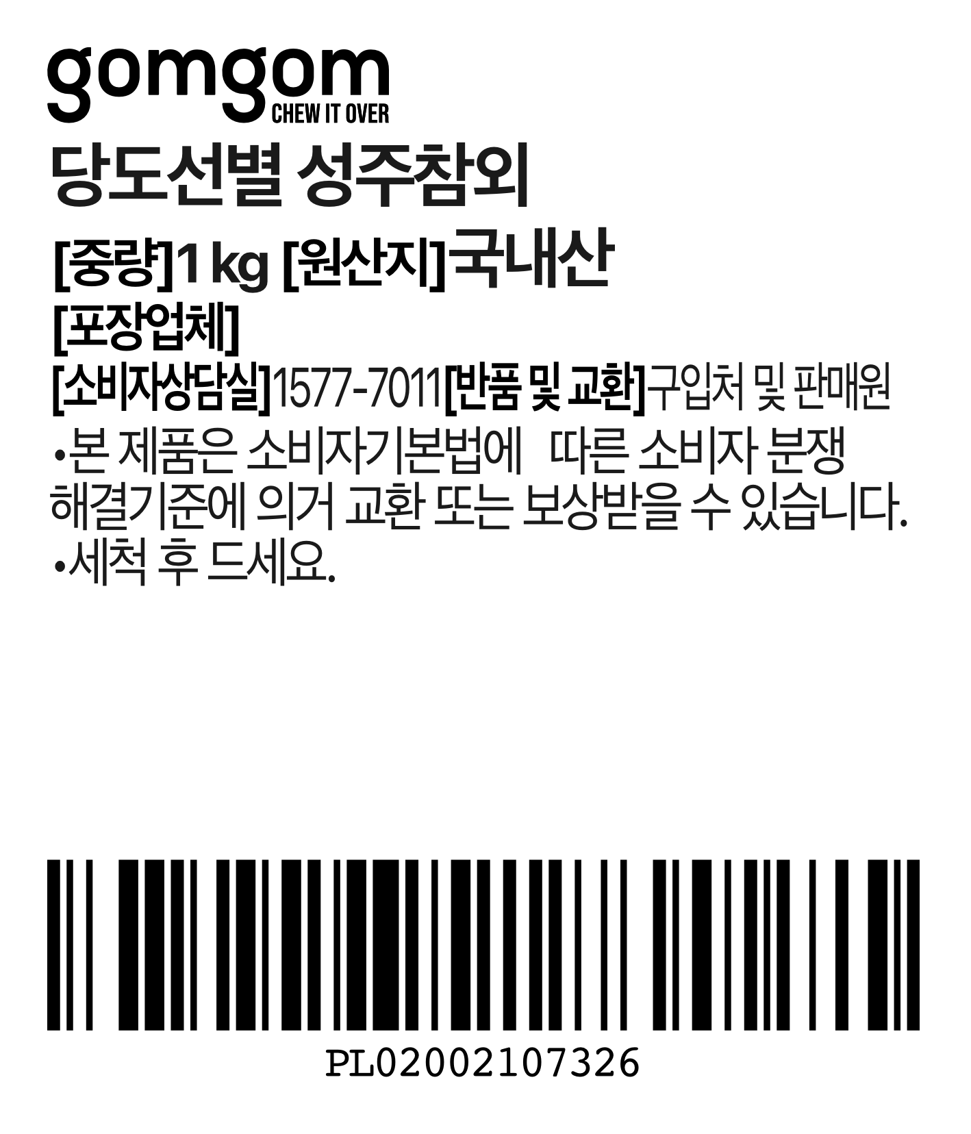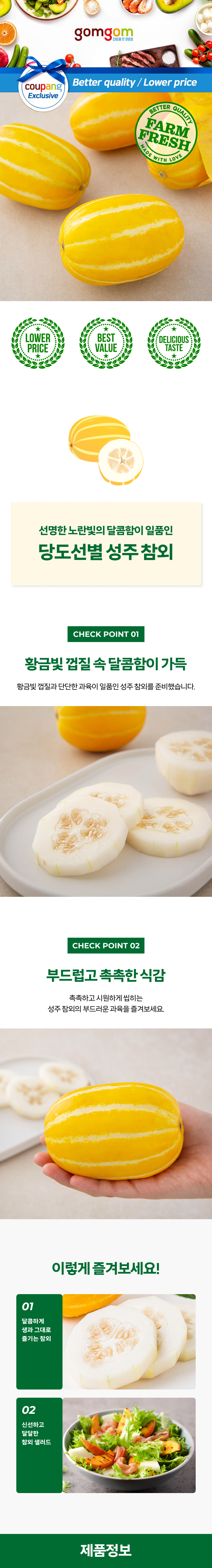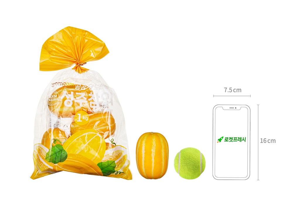 | 품목 또는 명칭 | 당도선별 성주참외 | 포장단위별 내용물의 용량(중량),수량,크기 | 1kg (4~5입) x 4봉 |