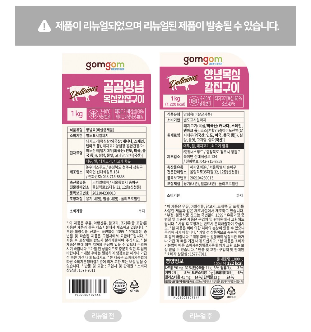 | 포장단위별 내용물의 용량(중량), 수량 | 1kg x 2개 | 원재료명 및 함량 | 컨텐츠 참조 |