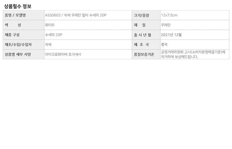 다만, 판매자의 제시사항이 관계법령보다 소비자에게 유리한 경우에는 판매자 제시사항이 적용됩니다.