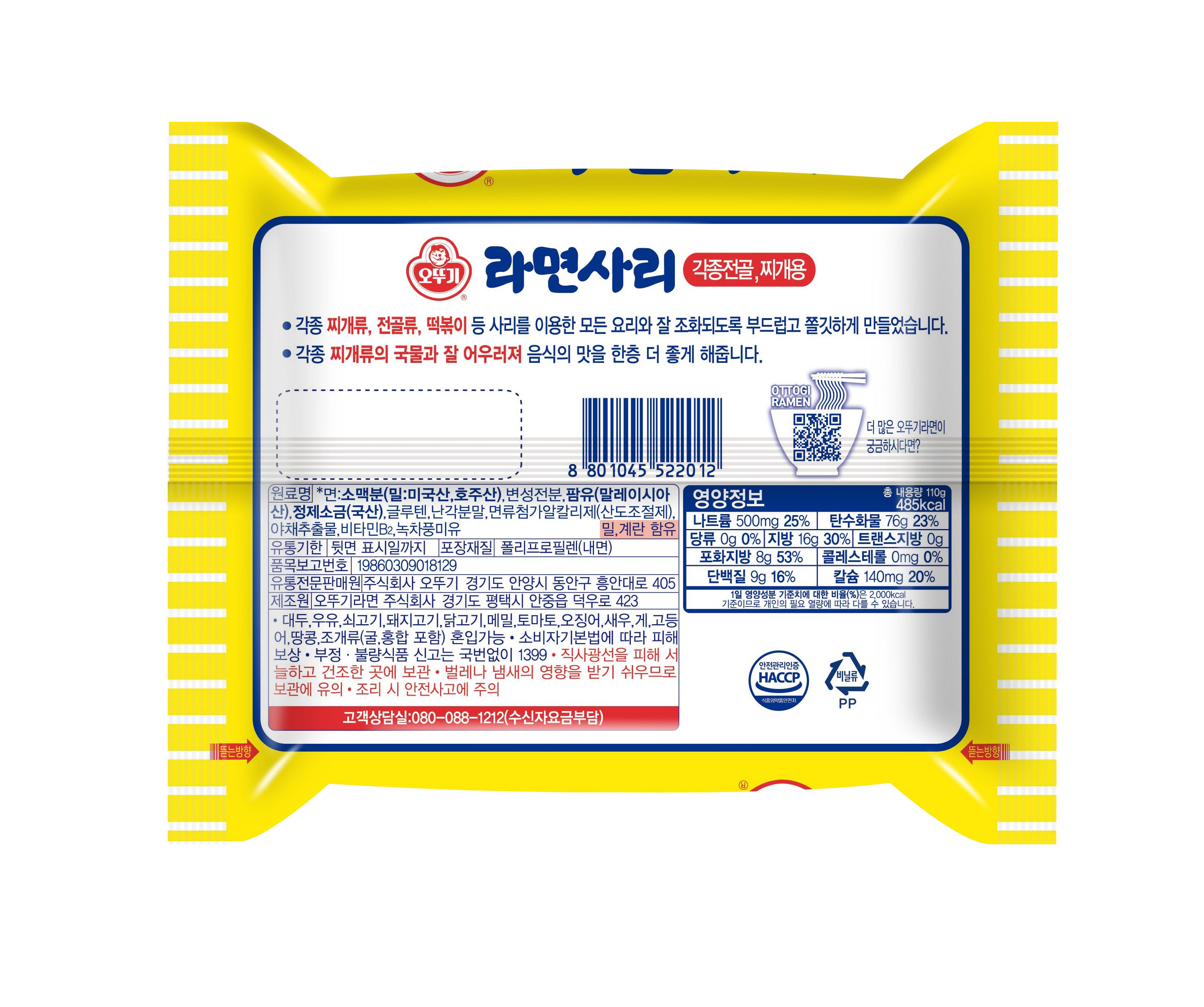 | 제품명 | 오뚜기 라면사리 | 식품의 유형 | 컨텐츠참조 |