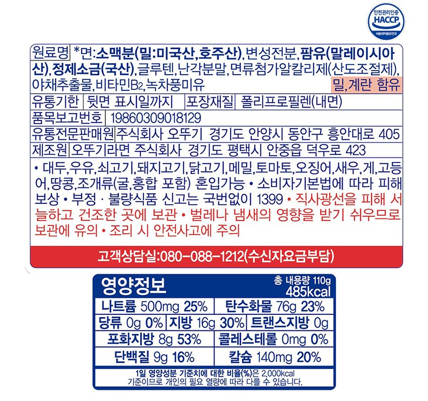 | 제품명 | 오뚜기 라면사리 | 식품의 유형 | 컨텐츠참조 |