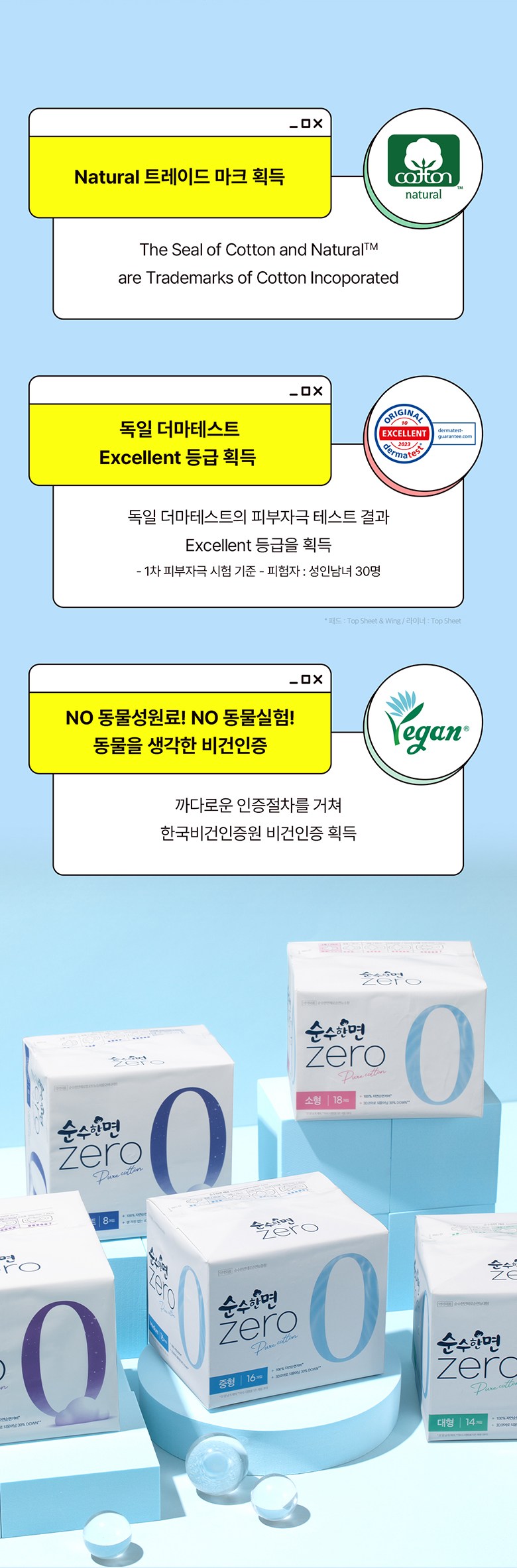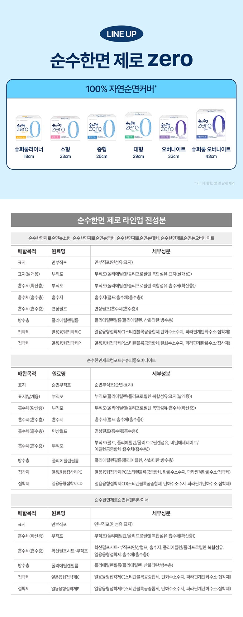 | 품명 및 모델명 | 순수한면 제로 순면 뉴 팬티라이너 | 인증/허가 사항 | 의약외품 |