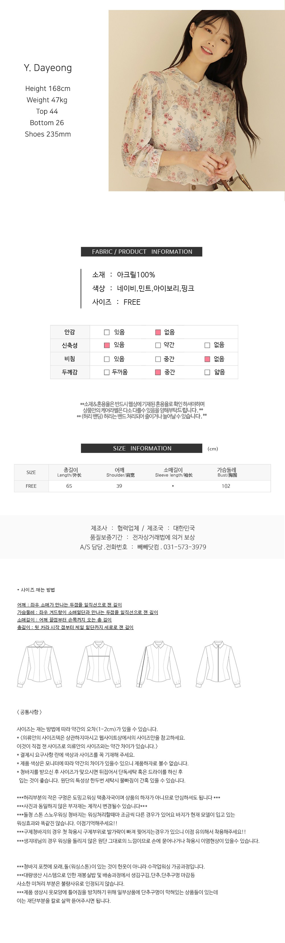 - 상의 사이즈: 여성 FREE (one size)