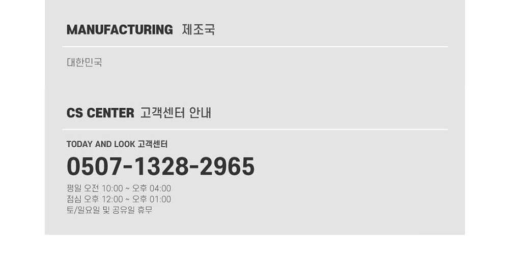 | 치수 | 컨텐츠 참조 | 제조자(수입자) | 투데이앤룩 협력업체(정확한 제조사 정보 업체미제공) |