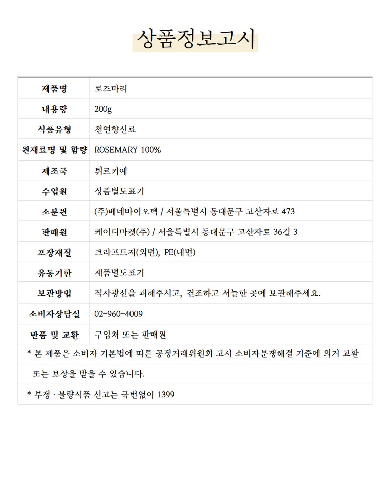 | 제품명 | 상품 상세페이지 참조 | 식품의 유형 | 상품 상세페이지 참조 |