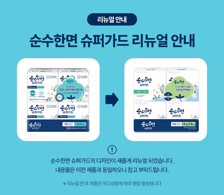 | 품명 및 모델명 | 순수한면 울트라 슈퍼가드 뉴 대형 날개형 | 인증/허가 사항 | 의약외품 |