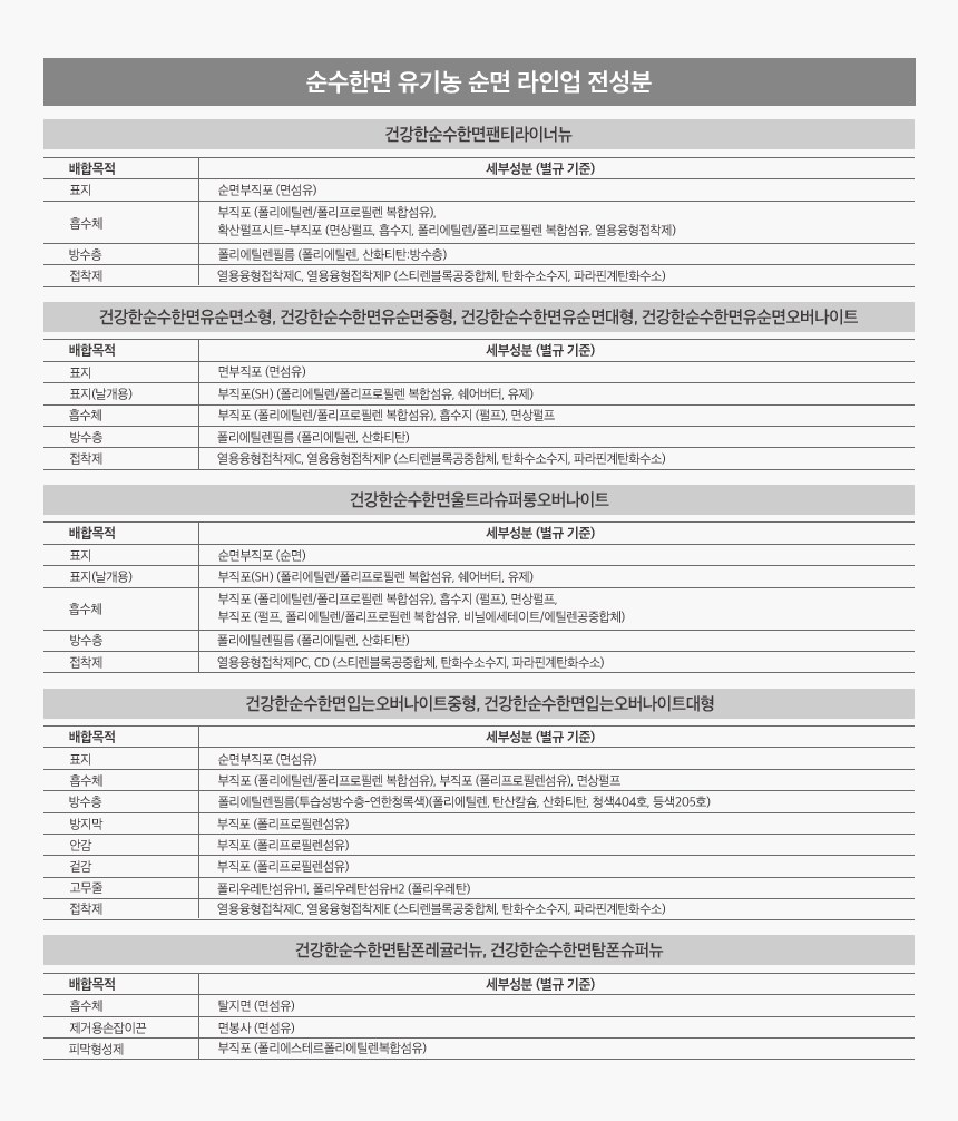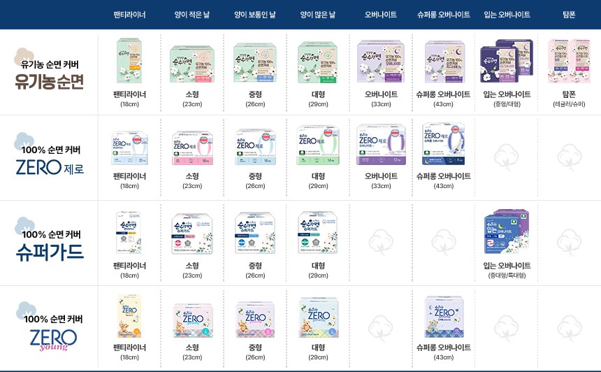 - 생리대커버소재: 유기농 순면