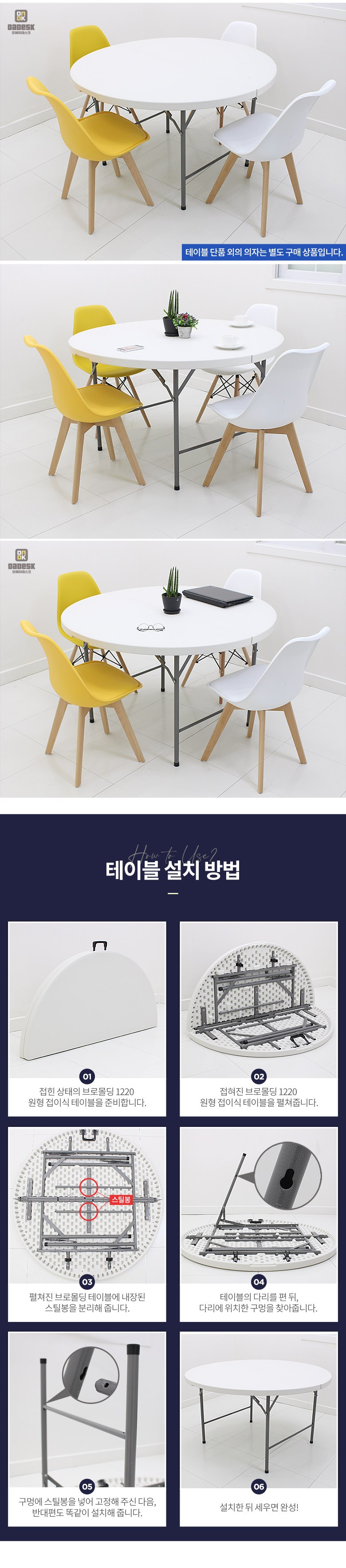 | 품명 | 브로몰딩테이블 원형 접이식 1220 화이트 | KC 인증정보 | 알수없음(업체미제공) |